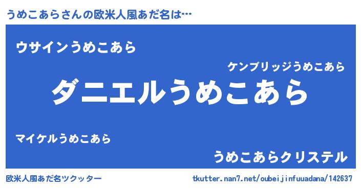 | 女子向けラノベタイトル風あだ名 | 『うめこあら夫妻のなれそめ』 |