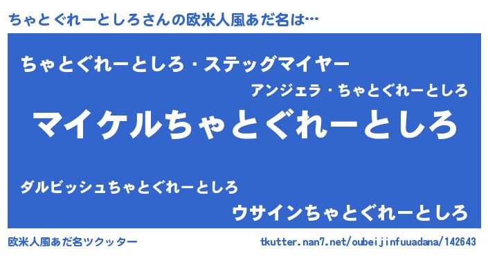 | 男性向けラノベタイトル風あだ名 | 『ちゃとぐれーとしろの憂鬱』 |