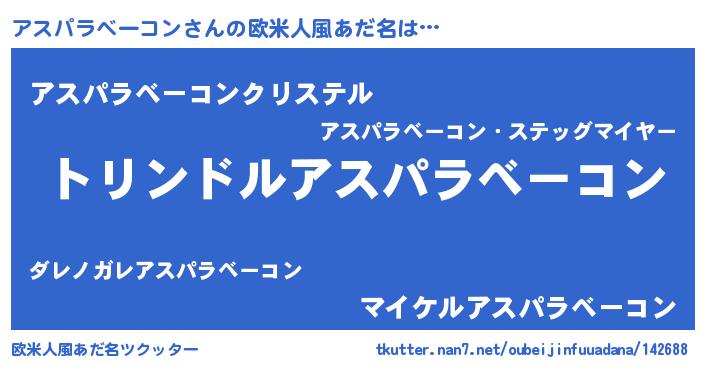 | 女子向けラノベタイトル風あだ名 | 『アスパラベーコンの玉の輿計画!』 |