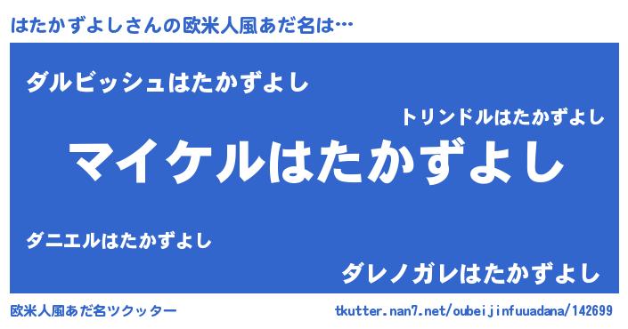| 女子向けラノベタイトル風あだ名 | 『誰かこのはたかずよしを説明してください! ~契約から始まるウェディング~』 |