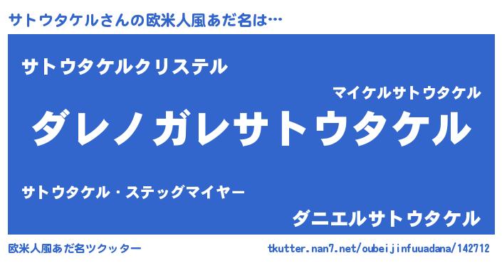 | 男性向けラノベタイトル風あだ名 | 『魔弾の王とサトウタケル』 |