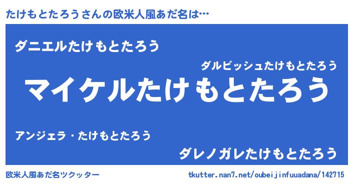 | 男性向けラノベタイトル風あだ名 | 『たけもとたろうの憂鬱』 |