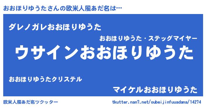 | 男性向けラノベタイトル風あだ名 | 『おおほりゆうたの嫁は女の子じゃないと思った?』 |