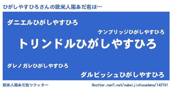 | ヘコむあだ名 | 『ひがしやすひろ(震え声)』『豆乳』 |