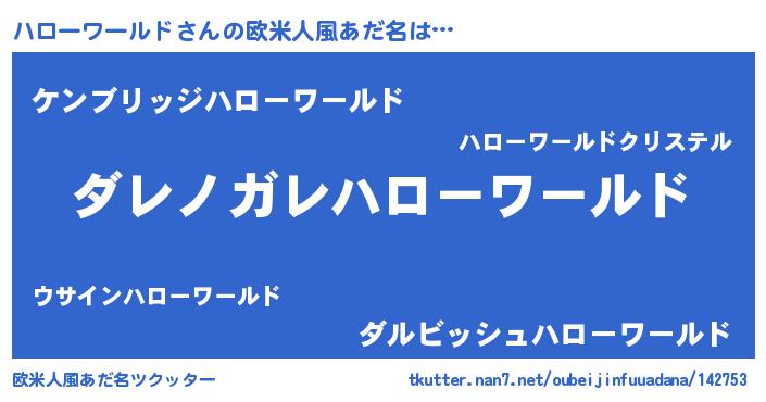 | 料理風あだ名 | 『ハローワールドのカルパッチョ風』 |