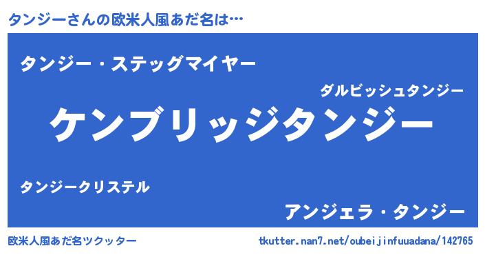 | 男性向けラノベタイトル風あだ名 | 『Re:タンジーから始める異世界生活』 |