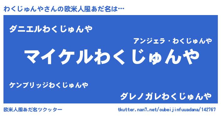 | 男性向けラノベタイトル風あだ名 | 『わくじゅんやの憂鬱』 |
