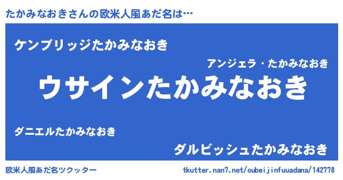 | 男性向けラノベタイトル風あだ名 | 『たかみなおきの嫁は女の子じゃないと思った?』 |