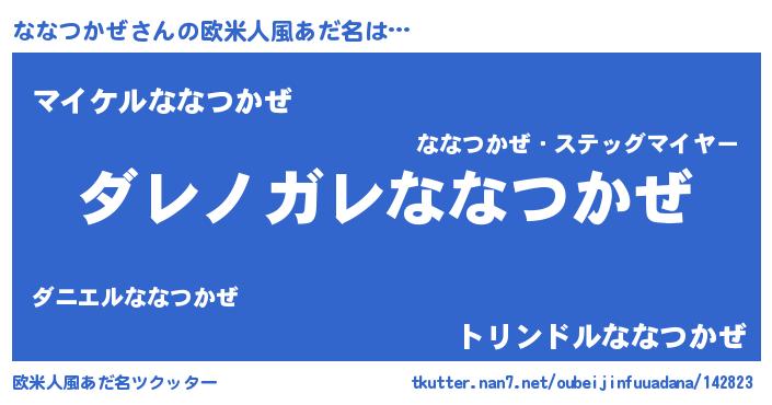| 男性向けラノベタイトル風あだ名 | 『魔弾の王とななつかぜ』 |