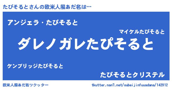 | 女子向けラノベタイトル風あだ名 | 『悪役たぴそるとに転生したようですが、知った事ではありません』 |