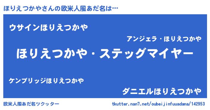 | 男性向けラノベタイトル風あだ名 | 『うちのほりえつかやが世界を掌握している!』 |
