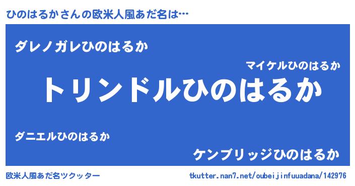 | 女子向けラノベタイトル風あだ名 | 『ひのはるかの玉の輿計画!』 |