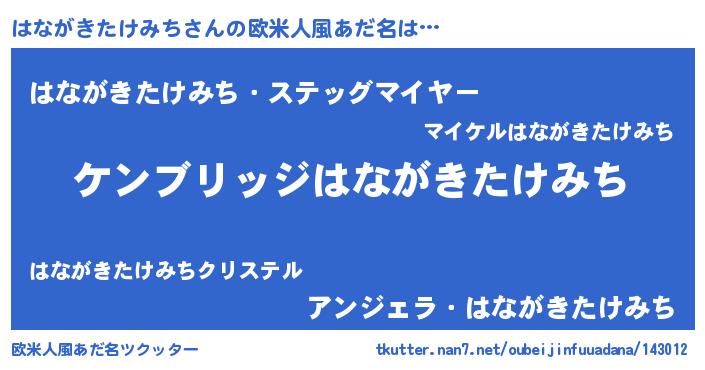 | 意味不明あだ名 | 『自称はながきたけみち』 |