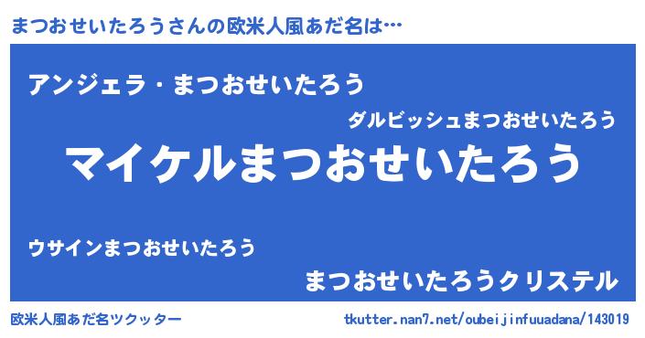 | 男性向けラノベタイトル風あだ名 | 『マツオセイタロウアートオンライン』 |