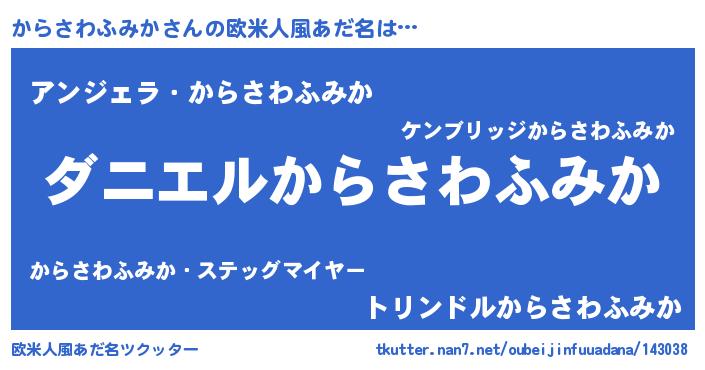 | ヘコむあだ名 | 『からさわふみか(小並感)』『からにー』 |