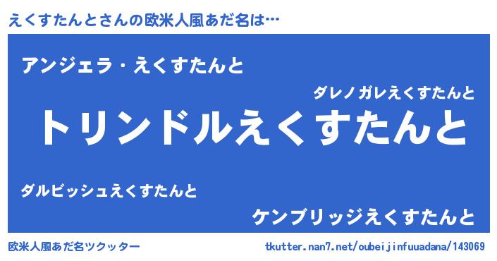 | ヘコむあだ名 | 『えくすたんと(震え声)』『えくお』 |
