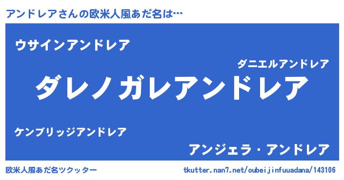 | 意味不明あだ名 | 『住所不定無職アンドレア(4歳)』 |