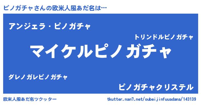 | 男性向けラノベタイトル風あだ名 | 『ピノガチャの憂鬱』 |