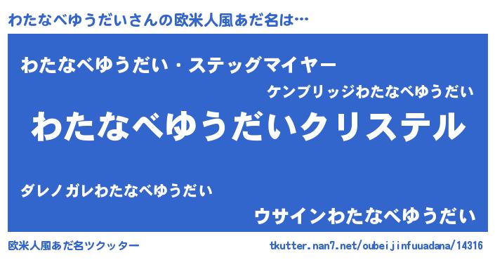 | ファンタジー風あだ名 | 『エターナルワタナベユウダイー』 |