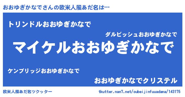 | 男性向けラノベタイトル風あだ名 | 『おおゆぎかなでの憂鬱』 |