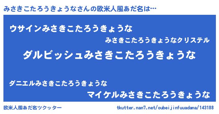 | 男性向けラノベタイトル風あだ名 | 『みさきこたろうきょうなという概念が存在しない退屈な世界 』 |