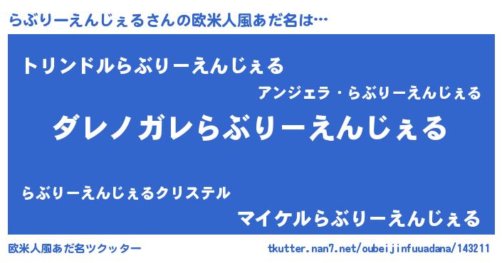 | 男性向けラノベタイトル風あだ名 | 『魔弾の王とらぶりーえんじぇる』 |