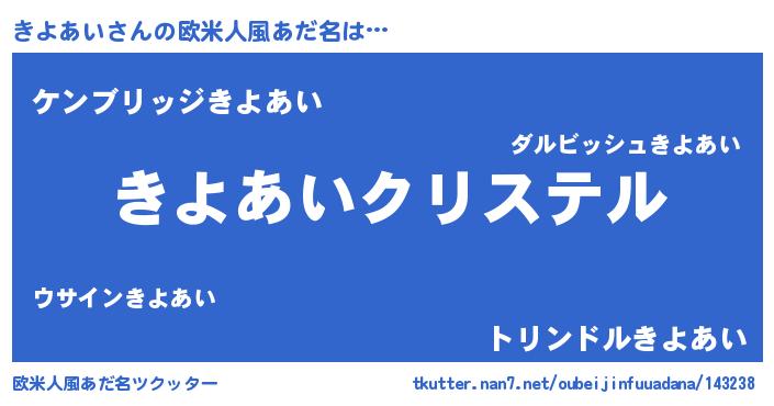 | ヘコむあだ名 | 『なまこ酢』『きよあい(遠い目)』 |