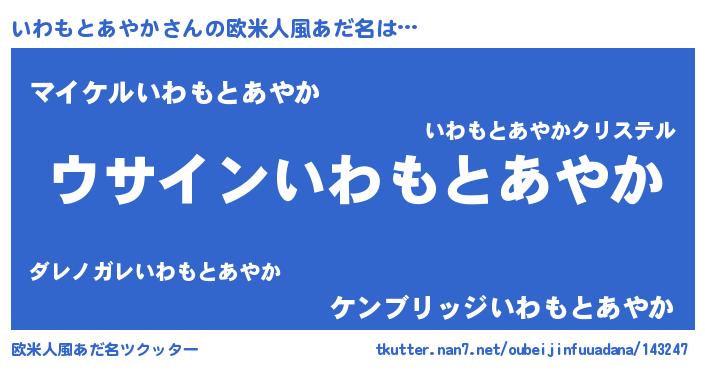 | 男性向けラノベタイトル風あだ名 | 『いわもとあやかの嫁は女の子じゃないと思った?』 |