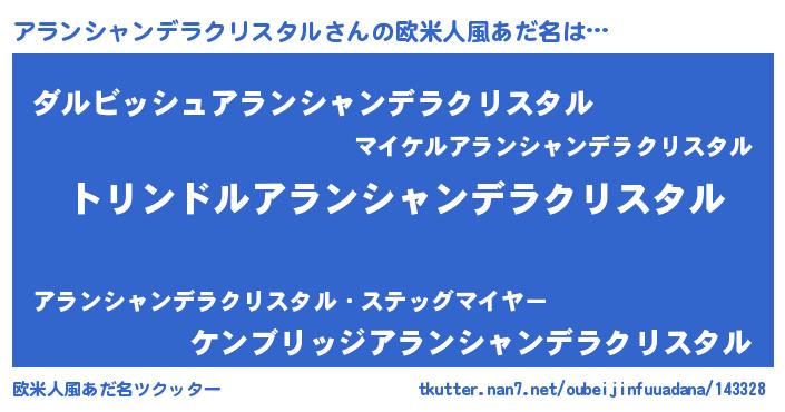 | 男性向けラノベタイトル風あだ名 | 『アランシャンデラクリスタルスレイヤー』 |