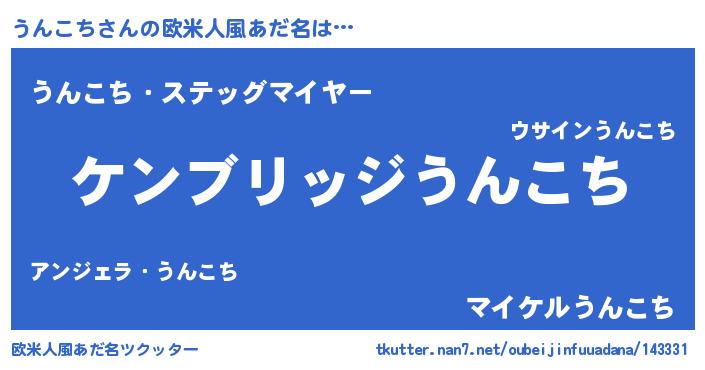| 男性向けラノベタイトル風あだ名 | 『Re:うんこちから始める異世界生活』 |
