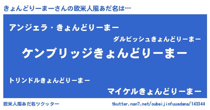 | 男性向けラノベタイトル風あだ名 | 『Re:きょんどりーまーから始める異世界生活』 |