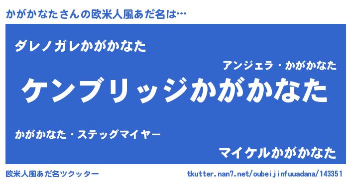 | 女子向けラノベタイトル風あだ名 | 『かがかなたなんてお断りですっ。』 |