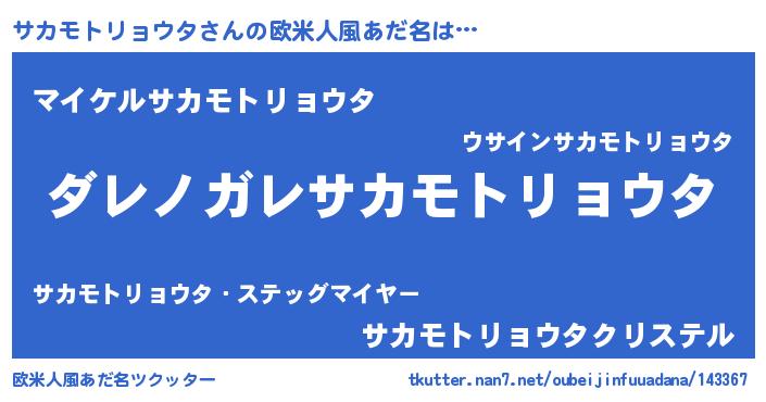 | 男性向けラノベタイトル風あだ名 | 『魔弾の王とサカモトリョウタ』 |