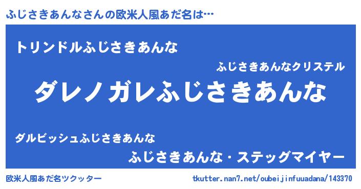 | 男性向けラノベタイトル風あだ名 | 『魔弾の王とふじさきあんな』 |