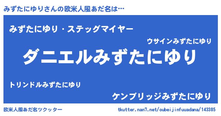 | 女子向けラノベタイトル風あだ名 | 『みずたにゆり夫妻のなれそめ』 |