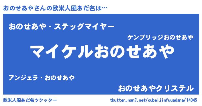 | 胡散臭い通販商品みたいなあだ名 | 『億万長者になれるブレスレット…その名も「おのせあや」』 |