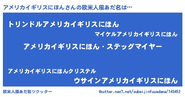 | 料理風あだ名 | 『アメリカイギリスにほんの炊き込みご飯』 |