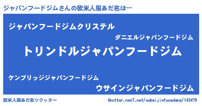 | 女子向けラノベタイトル風あだ名 | 『ジャパンフードジムの玉の輿計画!』 |