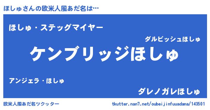 | 男性向けラノベタイトル風あだ名 | 『Re:ほしゅから始める異世界生活』 |