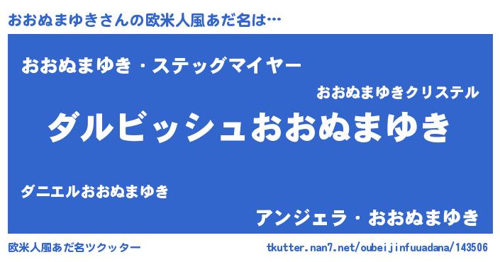 | 女子向けラノベタイトル風あだ名 | 『異世界で失敗しない100のおおぬまゆき』 |