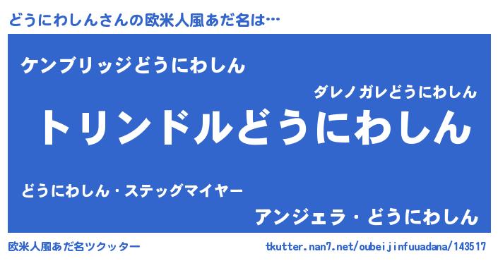 | ヘコむあだ名 | 『どうにわしん(笑)』『どうにゅー』 |