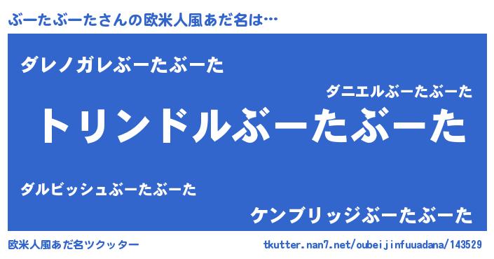 | 男性向けラノベタイトル風あだ名 | 『転生したらぶーたぶーただった件』 |