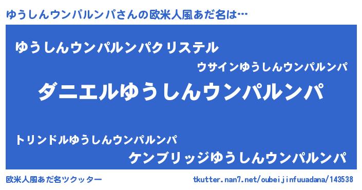 | 男性向けラノベタイトル風あだ名 | 『ノーゲーム・ノーユウシンウンパルンパ』 |