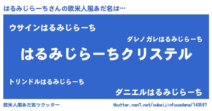 | ヒーロー風カッコイイあだ名 | 『ウルトラはるみじらーちマン』 |