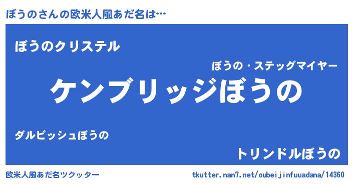 | 男性向けラノベタイトル風あだ名 | 『Re:ぼうのから始める異世界生活』 |