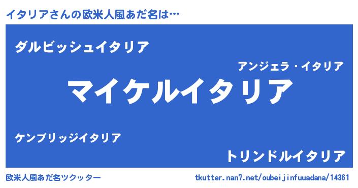 | 男性向けラノベタイトル風あだ名 | 『イタリアの憂鬱』『イタリアスレイヤー』 |