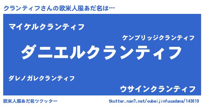 | 意味不明あだ名 | 『眠気覚ましガムクランティフ味』 |
