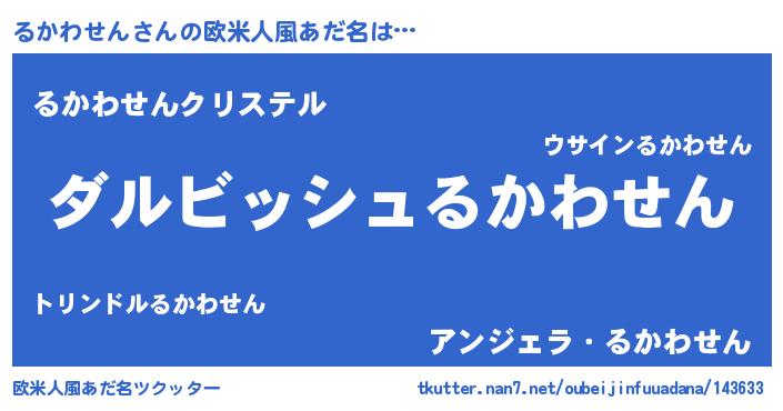 | 男性向けラノベタイトル風あだ名 | 『るかわせんという概念が存在しない退屈な世界 』 |