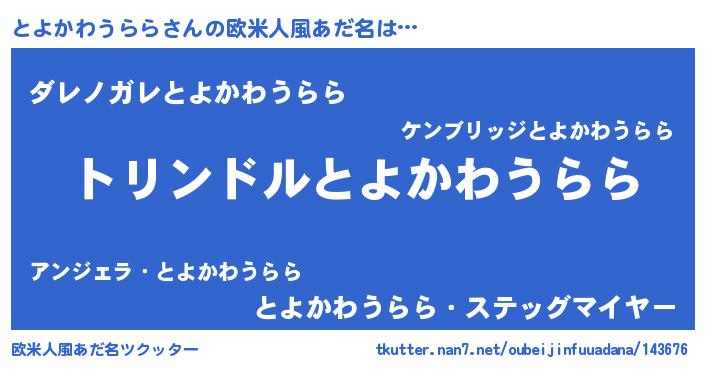 | 男性向けラノベタイトル風あだ名 | 『トヨカワウララスレイヤー』 |