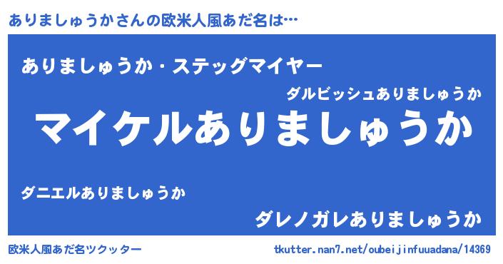 | 男性向けラノベタイトル風あだ名 | 『アリマシュウカアートオンライン』 |